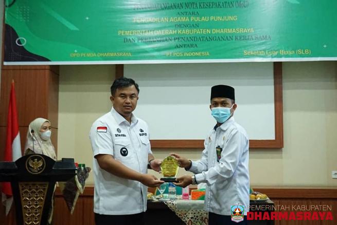 DHARMASRAYA -- Bupati Dharmasraya, Sutan Riska Tuanku Kerajaan tandatangani MoU dan PKS (Dokumen Perjanjian Kerja Sama) antara Pemerintah Kabupaten Dharmasraya dengan Pengadilan Agama Pulau Punjung tentang Layanan Hukum Kepada Para Pencari Keadilan. Penandatanganan dilaksanakan di Aula Kantor Bupati...
