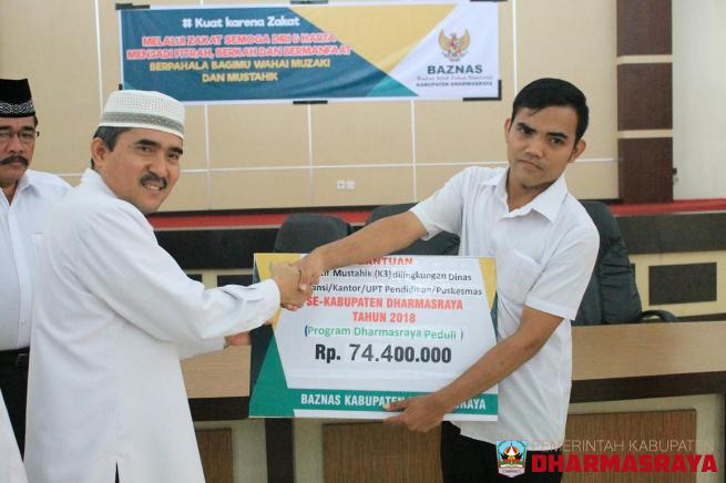 DHARMASRAYA - Badan Amil Zakat Nasional (Baznas) Kabupaten Dharmasraya menyerahkan insentif kepada 788 orang guru honorer dan petugas K3 se Kabupaten Dharmasraya. Insentif ini diserahkan oleh Pj. Sekda, Adlisman, didampingi Ketua Baznas, A. Gani, secara simbolis di Auditorium Dharmasraya, Rabu (06/0...