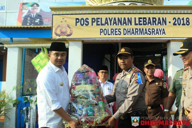 DHARMASRAYA - Bupati Dharmasraya, Sutan Riska Tuanku Kerajaan, bersama Forkopimda dan sejumlah Kepala OPD di lingkup Pemerintah Kabupaten Dharmasraya melakukan peninjauan ke sejumlah Pos Pengamanan dan Pelayanan Lebaran, Kamis (07/06). Peninjauan dilakukan di tiga titik, yakni di Sungai Rumbai, Gunu...