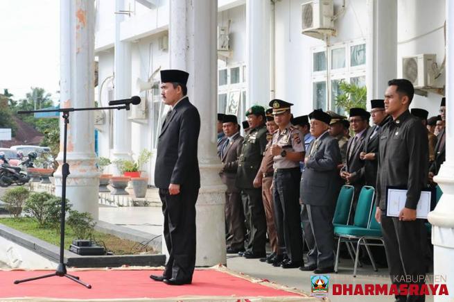 DHARMASRAYA - Upacara peringatan Hari Lahir Pancasila yang dipusatkan di Halaman Kantor Bupati Dharmasraya, Jum'at (01/06), berlangsung khidmat. Forkopimda, Kepala OPD, Organisasi Wanita dan ASN di lingkup Pemerintah Kabupaten Dharmasraya turut dalam upacara yang dipimpin oleh Pj. Sekda, Adlism...