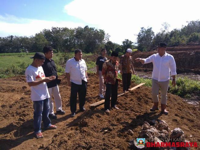 DHARMASRAYA - Memanfaatkan hari libur, Bupati Dharmasraya, Sutan Riska Tuanku Kerajaan, meninjau pembangunan embung desa di Nagari Sitiung, Ahad (01/04). Turut mendampingi bupati dalam kesempatan itu, Asisten Bidang Ekonomi dan Pembangunan, Adlisman, Kepala Bagian Humas, Arwinta dan Wali Nagari...