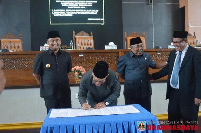 DHARMASRAYA -- Setelah melewati sejumlah proses dan tahapan yang berlaku, dua Rancangan Peraturan Daerah (Ranperda) yang diinisiasi oleh DPRD Kabupaten Dharmasraya, yakni tentang Pengelolaan Zakat dan Penyelenggaraan Bantuan Hukum, resmi ditetapkan menjadi Peraturan Daerah (Perda). Penetapan du...
