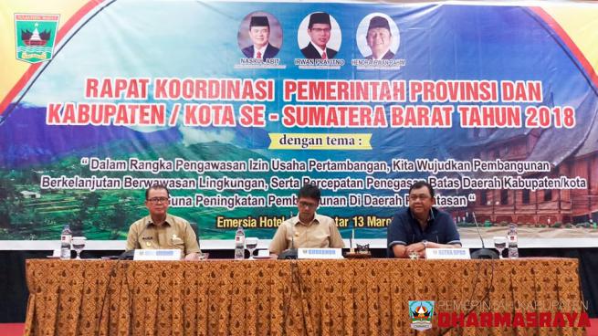 DHARMASRAYA -- Pemerintah Kabupaten Dharmasraya mengikuti Rapat Koordinasi dengan Pemerintah Provinsi Sumatera Barat, di Emersia Hotel, Batusangkar, Kabupaten Tanah Datar, Selasa (13/02). Kehadiran jajaran Pemerintah Kabupaten Dharmasraya dalam rapat itu dipimpin oleh Asisten Bidang Pemerintaha...