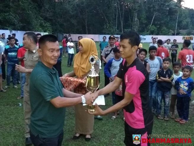 DHARMASRAYA -- Turnamen sepakbola Nagari Sikabau Cup 2018 resmi ditutup, Senin (26/02). Kesebelasan Porjab Blok D Sitiung 2 keluar sebagai jawara setelah berhasil menumbangkan kesebelasan Padang Laweh di babak final lewat adu finalti. Wakil Bupati Dharmasraya, Amrizal Dt Rajo Medan, saat menu...
