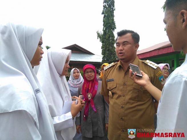 DHARMASRAYA -- Maksud hati melakukan inspeksi mendadak (sidak) ke SMPN 1 Pulau Punjung, Bupati Dharmasraya, Sutan Riska Tuanku Kerajaan malah dicegat oleh sejumlah siswa di sekolah tersebut, Senin (26/02) siang. Sekelompok siswa ini mendadak melontari bupati dengan sejumlah pertanyaan sembari m...