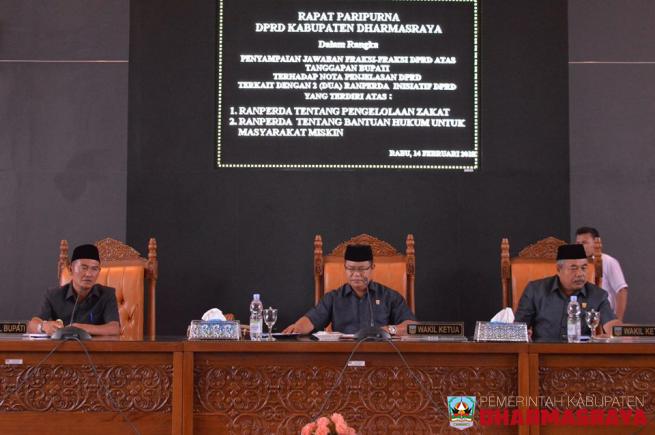 DHARMASRAYA -- Rancangan Peraturan Daerah (Ranperda) tentang Pengelolaan Zakat dan Bantuan Hukum untuk Mayarakat Miskin yang diinisiasi oleh Dewan Perwakilan Rakyat Daerah (DPRD) Kabupaten Dharmasraya kembali dirapatkan di Ruang Rapat Utama Sekretariat DPRD, Rabu (14/02). Pembahasan dua Ranper...
