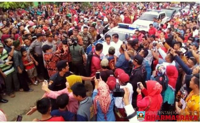 DHARMASRAYA -- Sesuai jadwal, Presiden Republik Indonesia, Joko Widodo, hari ini (07/02) melakukan kunjungan kerja ke Kabupaten Dharmasraya. Sekitar pukul 10.45 WIB, tiga helikopter yang memboyong presiden beserta rombongan, mendarat sempurna di Lapangan Bola Kaki Tamansari Jorong Teluk Sikai...