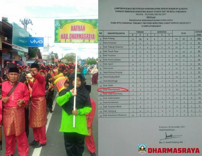 Dharmasraya,- Sepasang qori dan qoriah Kabupaten Dharmasraya berhasil meraih juara I dalam ajang Musabaqah Tilawatil Qur'an (MTQ) Nasional Tingkat Provinsi Sumatera Barat ke XXXVII Tahun 2017 di Kota Pariaman, Provinsi Sumatera Barat yang berlangsung sejak 4 sampai 11 Nopember 2017.Qori dan qori...