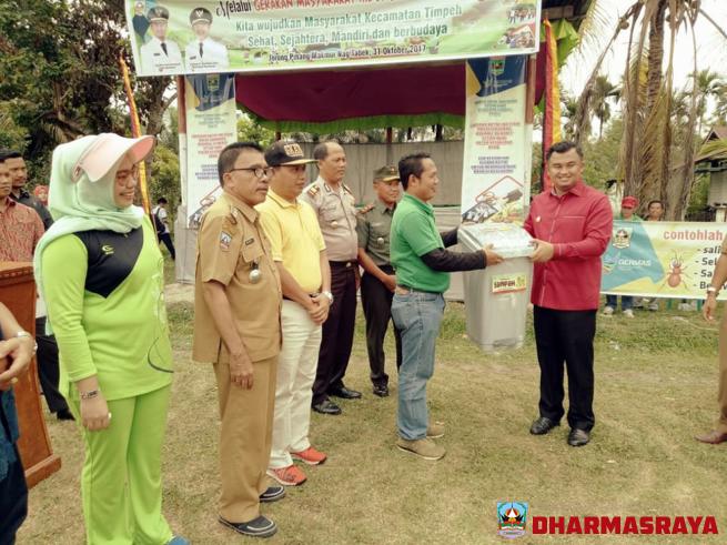 Dharmasraya, - Pemkab Dharmasraya menyerahkan beberapa bantuan kepada warga Pinang Makmur Nagari Tabek, Kecamatan Timpeh, antara lain bantuan tong sampah dari Forum Kabupaten Dharmasraya Sehat (FKDS) dan bibit ikan dari Dinas Perikanan dan Pangan Kabupaten Dharmasraya.Bantuan tersebut diserahkan ole...