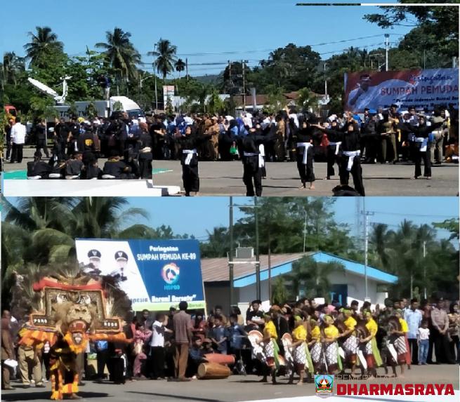 Dharmasraya, -- Pemerintah Kabupaten Dharmasraya menggelar serangkaian kegiatan dalam rangka memeriahkan peringatan hari Sumpah Pemuda ke-89 di halaman kantor Bupati Dharmasraya, Sabtu (28/10).Kegiatan diawali dengan pelaksanaan upacara yang diprakarsai oleh Dinas Kebudayaan Pariwisata, Pemuda d...