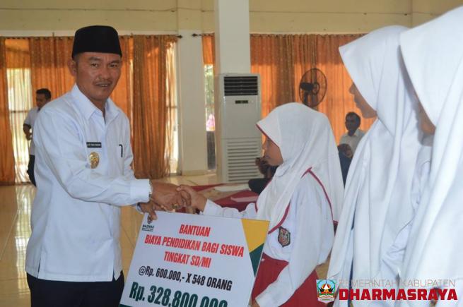 Dharmasraya, - Badan Amil Zakat Nasional (Baznas) Kabupaten Dharmasraya menyalurkan zakat dalam bentuk biaya pendidikan bagi 812 pelajar yang berasal dari keluarga kurang mampu, yang secara keseluruhan bernilai Rp487.200.000.Beasiswa tersebut diserahkan secara simbolis oleh Wakil Bupati Dharmasr...