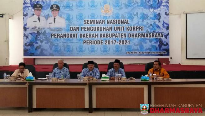Dharmasraya, Infopublik - Pemerintah Kabupaten Dharmasraya melantik dan mengukuhkan sebanyak 37 Dewan Pengurus (DP) Korps Pegawai Republik Indonesia (Korpri) unit Perangkat Daerah se-Kabupaten Dharmasraya periode 2017-2021.Pengukuhan dilaksanakan di auditorium kantor Bupati Dharmasraya, Kamis (19...