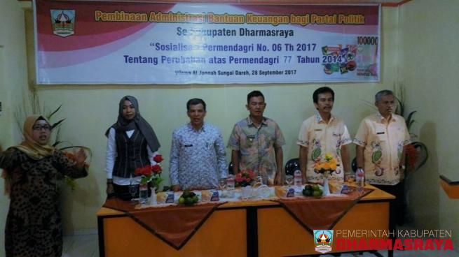 Dharmasrya, -- Pemerintah Kabupaten Dharmasraya, melalui Kantor Kesatuan Bangsa dan Politik (Kesbangpol), memberikan pembinaan terhadap 40 pengurus partai politik (Parpol), di Wisma Al Jannah Sungai Dareh, Kecamatan Pulau Punjung, Kamis (28/9).Pembinaan tersebut dirangkai dengan kegiatan Sosial...