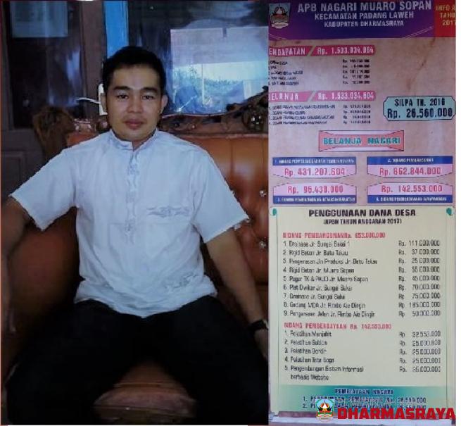 Dharmasrya, -- Pemerintahan Nagari Muaro Sopan Kecamatan Padang Laweh Kabupaten Dharmasraya mengalokasikan dana sebesar Rp230.000.000 atau sekitar 29% untuk membangun infrastruktur pendidikan di daerahnya.Hal itu disampaikan oleh Walinagari Muaro Sopan Kecamatan Padang Laweh, Ari Asmanto, S.Psi d...