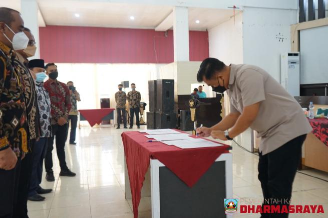 DHARMASRAYA -- Bupati Dharmasraya, Sutan Riska Tuanku Kerajaan bersama dengan pejabat tinggi pratama melaksanakan Rapat Koordinasi (Rakor) percepatan pelaksanaan reformasi birokrasi. Serta penandatanganan pakta integritas dan perjanjian kinerja tahun 2022. Hal ini dilakukan, untuk lebih menyempurnak...