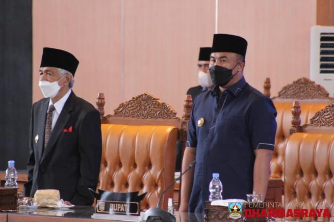 DHARMASRAYA - Bupati Dharmasraya, Sutan Riska Tuanku Kerajaan bersama Wakil Bupati, DP Datuk Labuan, menghadiri Rapat Paripurna Istimewa DPRD dalam rangka pengambilan sumpah Pengganti Antar Waktu (PAW) Anggota DPRD Kabupaten Dharmasraya dari saudara Alm. H. Benny Ridwan kepada saudara Haryanto, SH y...