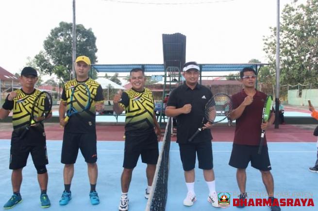 DHARMASRAYA - Forum Komunikasi Pimpinan Daerah (Forkopimda) Kabupaten Dharmasraya bersama Pengurus Daerah Persatuan Tenis Lapangan (Pelti) Dharmasraya adakan kunjungan muhibah sekaligus mengadakan pertandingan persahabatan dengan rekan sejawat di Kabupaten Sijunjung, Minggu (26/12).Delegasi Kabupate...