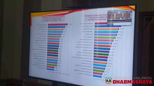 DHARMASRAYA - Wakil Bupati Dharmasraya, DP Datuk Labuan, didampingi sejumlah kepala perangkat daerah mengikuti rapat koordinasi virtual terkait Penanggulangan Pandemi Covid-19 saat Nataru sekaligus evaluasi vaksinasi Covid-19, bersama Pemerintah Provinsi Sumatera Barat, Selasa (28/12/21).Rakor yang ...