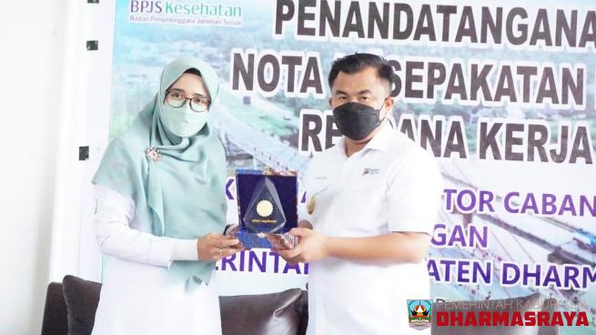 DHARMASRAYA - Pemerintah Kabupaten Dharmasraya dan BPJS Kesehatan Kantor Cabang Solok tandatangani Nota Kesepakatan dan Rencana Kerja, sebagai upaya memperkuat komitmen dalam memberikan layanan terbaik bagi masyarakat. Penandatangan tersebut dilakukan antara Bupati Dharmasraya, Sutan Riska Tuanku Ke...