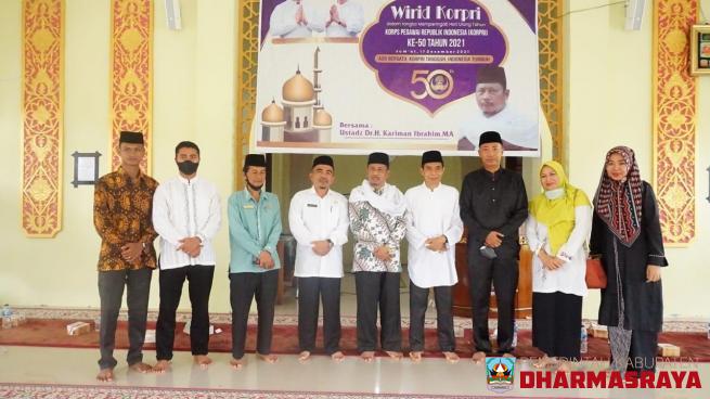 DHARMASRAYA - Dalam rangka memperingati hari jadi Korps Pegawai Republik Indonesia (KORPRI) ke-50, Dewan Pengurus KORPRI Kabupaten Dharmasraya menyelenggarakan wirid di Mushalla At Tauhid, Komplek Kantor Bupati Dharmasraya, Jum'at (17/12/21).Tak tanggung-tanggung, Dewan Pengurus KORPRI Kabupaten Dha...