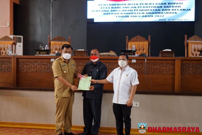 DHARMASRAYA - Bupati Dharmasraya, Sutan Riska Tuanku Kerajaan, menyampaikan Nota Penjelasan Rancangan APBD Kabupaten Dharmasraya Tahun Anggaran 2022, dalam Rapat Paripurna yang digelar DPRD Dharmasraya, Senin (25/10/21).Pada kesempatan rapat paripurna yang dipimpin Ketua DPRD, Paryanto, tersebut bup...