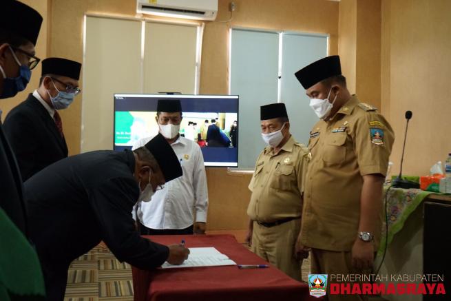 DHARMASRAYA - Bupati Dharmasraya, Sutan Riska Tuanku Kerajaan melantik Pimpinan Baznas Kabupaten Dharmasraya Periode 2021-2026, bertempat di Aula Lantai 2 Kantor Bupati Dharmasraya, Senin (25/10/21). Acara pelantikan ini turut disaksikan secara virtual oleh Pengurus Baznas Provinsi Sumatera Barat, D...