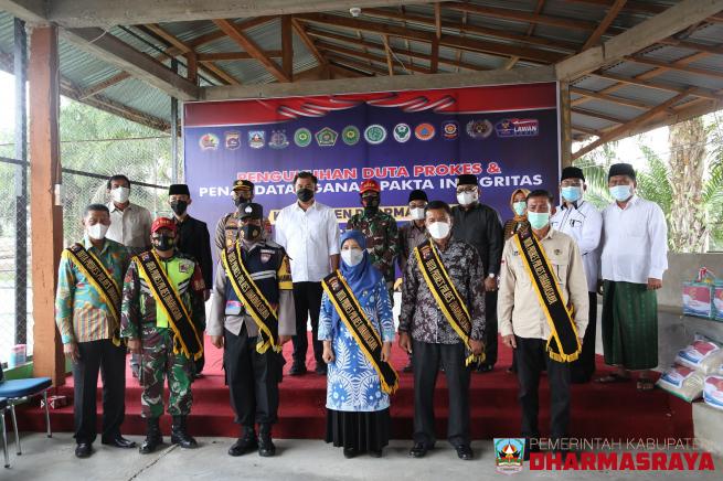 DHARMASRAYA - Bupati Dharmasraya, Sutan Riska Tuanku Kerajaan, bersama unsur Forkopimda menghadiri acara Pengukuhan Duta Prokes, yang dilaksanakan Polres Dharmasraya, Kamis (22/7/21). Acara ini juga dilanjutkan dengan Penandatanganan Pakta Integritas oleh Bupati Sutan Riska bersama Kapolres Dharmasr...