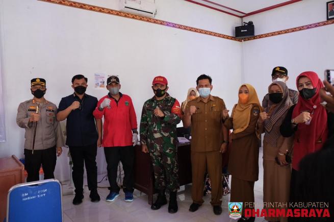 DHARMASRAYA - Bupati Dharmasraya, Sutan Riska Tuanku Kerajaan didampingi Sekretaris Daerah, Adlisman, Rabu (14/7/21), turun ke lapangan untuk memantau dan mensuport pelaksanaan vaksinasi covid-19 di lingkungan Perangkat Daerah. Kali ini, vaksinasi dipusatkan di Kantor Dinas PMPTSP.Selain para pegawa...