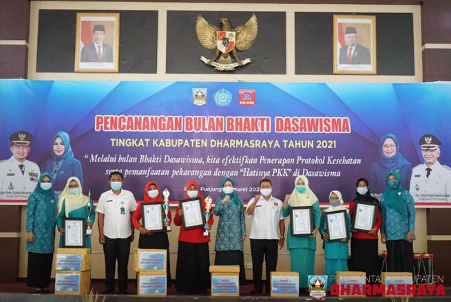 DHARMASRAYA - Bulan Bhakti Dasawisma tingkat Kabupaten Dharmasraya resmi dicanangkan, di Auditorium Kantor Bupati Dharmasraya, Rabu (10/03/21). Pencanangan ditandai dengan pemukulan gendang oleh Asisten Pemerintahan dan Kesra, M. Yusuf, bersama Wakil Ketua TP PKK Kabupaten Dharmasraya, Ny. Mega Dasr...