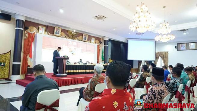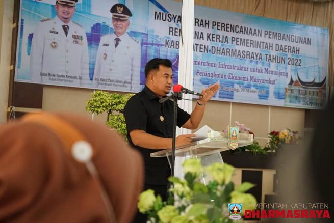 DHARMASRAYA - Bupati Dharmasraya, Sutan Riska Tuanku Kerajaan, membuka secara resmi Musrenbang RPKD (Rencana Kerja Pembangunan Daerah) Kabupaten Dharmasraya Tahun 2022, di Auditorium Kantor Bupati Dharmasraya, Selasa (30/2/21). Musrenbang ini turut dihadiri Wakil Bupati, DP Datuk Labuan, Pimpinan da...