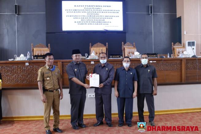 DHARMASRAYA - Bupati Dharmasraya, Sutan Riska Tuanku Kerajaan menyampaikan Rancangan Peraturan Daerah (Ranperda) tentang Pertanggungjawaban Pelaksanaan Anggaran Pendapatan dan Belanja Daerah (APBD) Kabupaten Dharmasraya Tahun Anggaran 2019, dalam Rapat Paripurna DPRD yang dilaksanakan di Ruang Rapat...