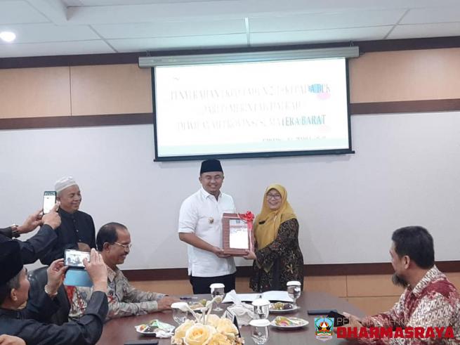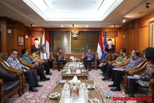 Bupati Dharmasraya, Sutan Riska Tuanku Kerajaan, menyerahkan Laporan Keuangan Pemerintah Daerah (LKPD) Kabupaten Dharmasraya tahun 2019 kepada Badan Pemeriksa Keuangan Republik Indonesia (BPK-RI) Perwakilan Sumatera Barat, Jum'at (13/03).Turut mendampingi bupati dalam kesempatan itu Sekretaris Daera...