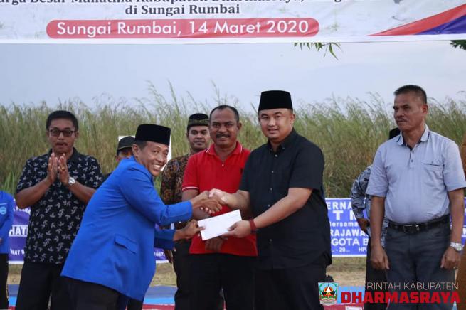 Bupati Dharmasraya, Sutan Riska Tuanku Kerajaan menghadiri acara silaturrahim dan latihan gabungan keluarga besar komunitas Maju Sehat Bersama (Mahatma) Cabang Dharmasraya, Bungo dan Tebo, yang digelar di Lapangan Peset Sungai Rumbai, Sabtu (14/03/20).Selain bupati, juga terlihat hadir Ketua DPRD Ka...