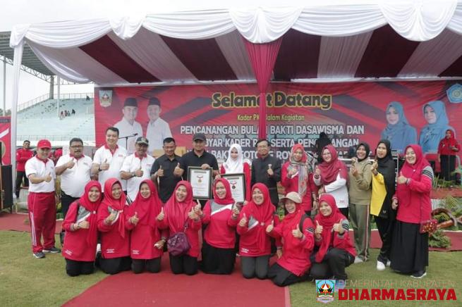 Dharmasraya---Pencanangan Bulan Bhakti Dasawisma, Gebyar Kader PKK serta pencanangan Bulan Bhakti Gotong Royong Masyarakat, tahun 2020 tingkat Kabupaten Dharmasraya, yang digelar di Sport Centre Dharmasraya, Selasa (03/03/20), berlangsung meriah dengan pemecahan rekor MURI Baribu Lapek sebagai kulin...