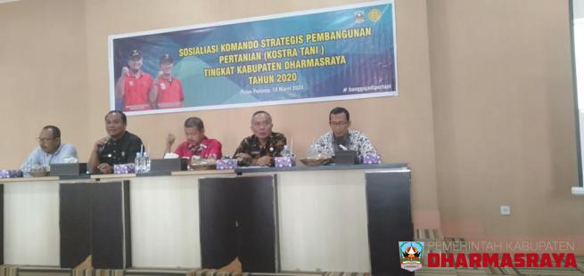 DHARMASRAYA - Pemerintah Kab.Dharmasraya mengadakan sosialisasi Komando Strategis Pembangunan Pertanian (KOSTRA TANI ) tk Kabupaten Dharmasraya Tahun 2020 pada hari Jum'at tanggal 13 Maret 2020 bertempat di Aula lt. 2 Kantor Bupati Dharmasraya. Pada sambutan yg disampaikan oleh Bapak M.Yusuf ,SH me...