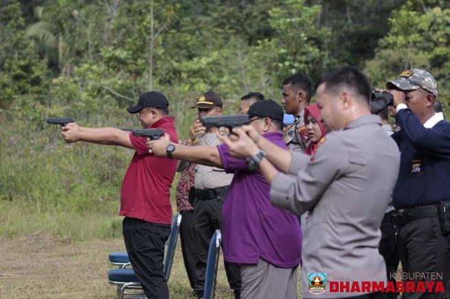 DHARMASRAYA - Bupati Dharmasraya, Sutan Riska Tuanku Kerajaan, ikut latihan menembak bersama Kapolres Dharmasraya, AKBP Imran Amir dan segenap unsur Forkopimda yang ada di Kabupaten Dharmasraya. Kegiatan ini dilaksanakan di Lapangan Tembak Mapolres Dharmasraya, Kamis (16/01/20).Selain Bupati, Kapolr...