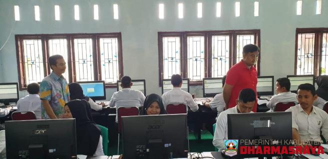 DHARMASRAYA - Bupati Dharmasraya, Sutan Riska Tuanku Kerajaan, meninjau pelaksanaan simulasi tes CPNS berbasis Computer Assisted Test (CAT), yang digelar BKPSDM, di SMAN Unggul Dharmasraya, Sabtu (14/12/19).Simulasi yang akan dilaksanakan sampai tanggal 15 Desember ini diikuti 525 peserta, yang meru...