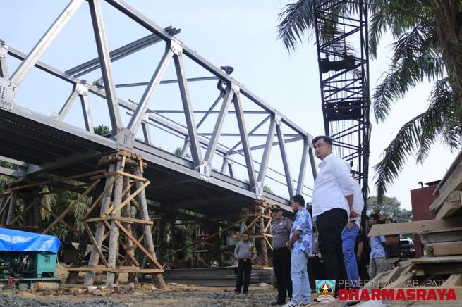 Dharmasraya---Jembatan baru benilai sekitar Rp 65 miliar itu kini sudah banyak kemajuan dalam pembangunannya. Para pekerja kini sudah mulai merangkai dan memasang kerangka jembatan. Untuk mempecepat pekerjaan, pemasangan kerangka jembatan dimulai dari sisi Jorong Pulai, Nagai Sitiung dan dari si...