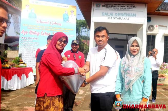 DHARMASRAYA -- Bupati Dharmasraya, Sutan Riska Tuanku Kerajaan menghadiri acara Hari Kesehatan Nasional (HKN) Terintegrasi Dengan Gerakan Masyarakat Hidup Sehat (Germas). Acara ini dilaksanakan di halaman Kantor Wali Nagari Sungai Rumbai Timur, yang dihadiri oleh Kepala Dinas Pertanian, Darisman, Ke...