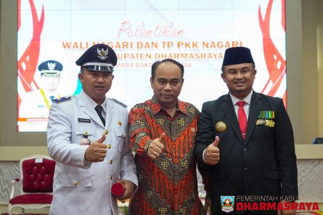 Dharmasraya, Bupati Dharmasraya, Sumatera Barat (Sumbar), Sutan Riska Tuanku Kerajaan melantik 42 wali nagari hasil Pemilihan wali nagari (Pilwana) serentak tahun 2022, di Auditorium Kantor Bupati Dharmasraya, Pulau Punjung, Kamis (8/12/2022).Hadir dalam kesempatan itu, Wakil Menteri Desa, Pembangun...