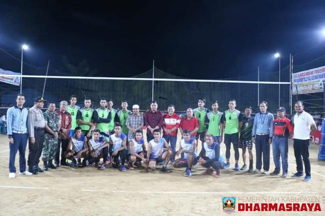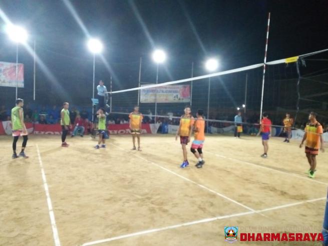 DHARMASRAYA - Tim unggulan Tandikek dari Kabupaten Bungo akhirnya dikandaskan Tim Ambasador dari Kabupaten Dharmasraya dalam final segitiga turnamen Volyball KUD Sinar Makmur memperebutkan piala bupati Dharmasraya, Minggu (21/7/19) dinihari, di Nagari Koto Ranah, Kecamatan Koto Besar, Kabupaten Dhar...