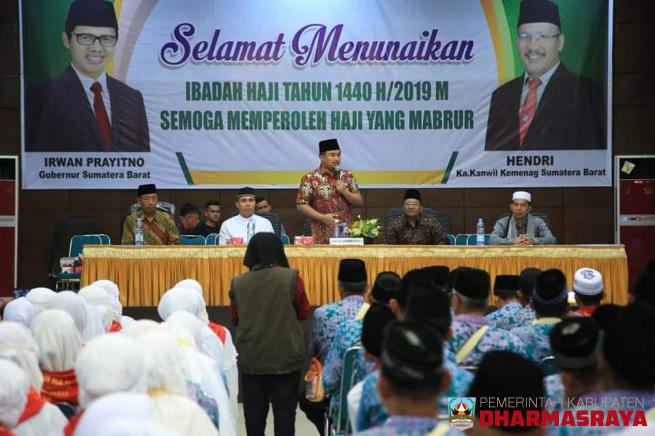 DHARMASRAYA - Jam menunjukkan pukul 22.00 WIB, 317 jamaah calon haji asal Kabupaten Dharmasraya baru saja dilepas oleh Danlantamal II Padang. Mereka belum beranjak dari aula Asama Haji Tabiang, Padang. Sejurus kemudian datang Bupati Dharmasraya Sutan Riska Tuanku Kerajaan bersama Kapolres AKBP H. Im...