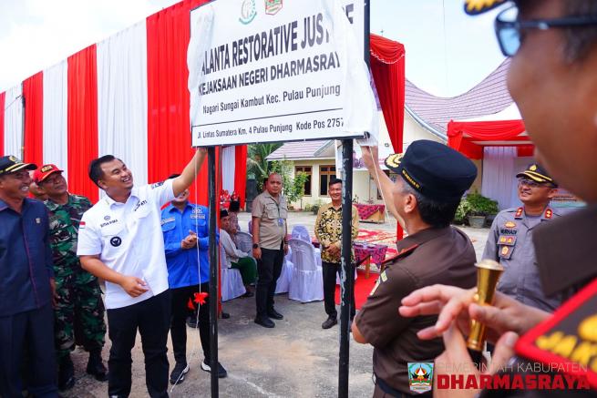 DHARMASRAYA -- Bupati Dharmasraya, Sutan Riska Tuanku Kerajaan menghadiri acara peresmian Palanta Restorative Justice di Kabupaten Dharmasraya, acara ini dilaksanakan di Kantor Wali Nagari Sungai Kambut, Rabu, (02/11/22). Acara ini dihadiri oleh Kepala Kejaksaan Tinggi Sumatera Barat, Yusron, Pimpin...