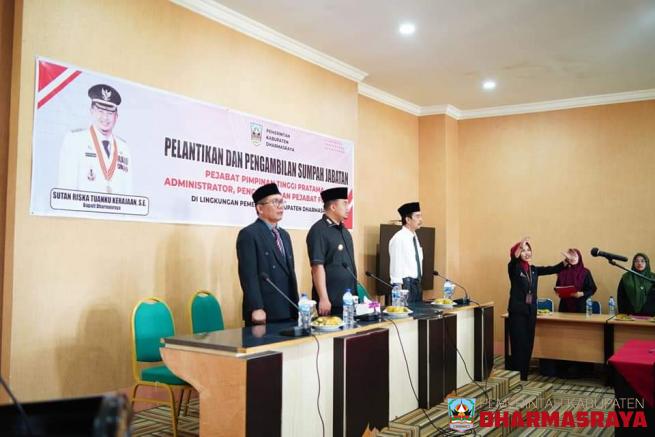 Pulau Punjung- Bupati Dharmasraya, Sutan Riska Tuanku Kerajaan, lantik tiga Pejabat Tinggi Pratama, di Aula Kantor Bupati setempat, Jum'at (28/10/2022). Ketiga pejabat eselon II tersebut untuk mengisi Kepala Perangkat Daerah yang lowong.Adapun Pejabat Tinggi Pratama yang dilantik adalah, Budi Waluyo...