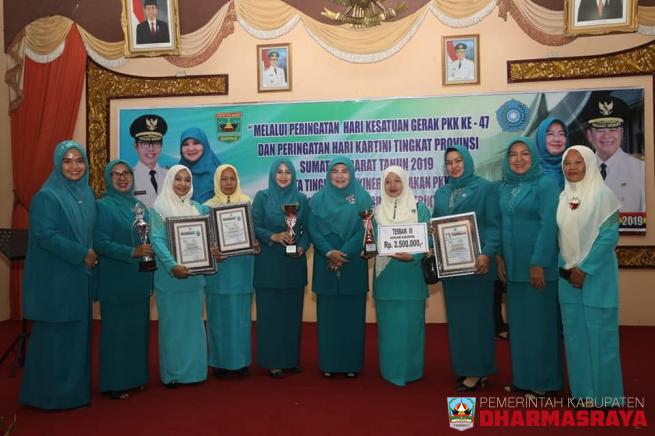 TP PKK Kabupaten Dharmasraya di bawah komando Ny. Dewi Sutan Riska kembali mendulang sejumlah prestasi di tingkat Provinsi Sumatera Barat. Tak tanggung-tanggung, tiga prestasi disabet sekaligus.Yakni meraih Juara III Lomba PHBS (Perilaku Hidup Sehat) yang dalam hal ini diwakili oleh Nagari Taratak T...