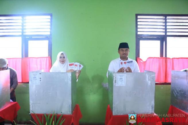 Bupati Dharmasraya, Sutan Riska Tuanku Kerajaan dan Wakil Bupati, H. Amrizal Dt Rajo Medan, telah menggunakan hak pilihnya dalam pemilihan umum presiden dan legislatif serentak, Rabu, 17 April 2019.Bupati yang turut didampingi istri, Ny. Dewi Sutan Riska, menggunakan hak pilihnya di Tempat Pemunguta...