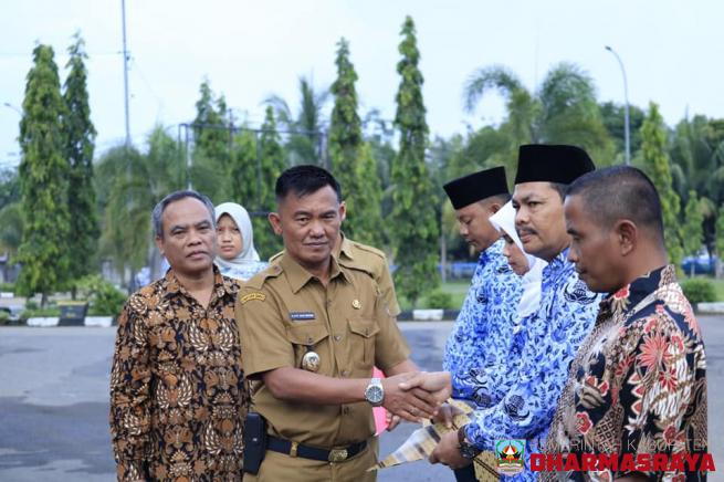 DHARMASRYA - Sebanyak 376 Aparatur Sipil Negara (ASN) di lingkungan Pemerintah Kabupaten Dharmasraya menerima SK Kenaikan Pangkat Periode 1 April 2019.SK ini diserahkan oleh Wakil Bupati Dharmasraya, H. Amrizal Dt Rajo Medan, dalam acara Apel Gabungan yang digelar di Halaman Kantor Bupati Dharmasray...