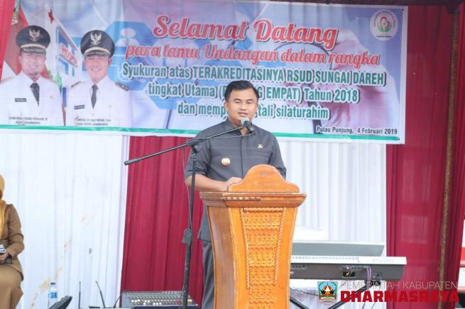 DHARMASRAYA - RSUD Sungai Dareh menggelar acara syukuran, Senin (04/02). Acara yang digelar di halaman rumah sakit ini adalah bentuk syukur atas keberhasilan RSUD Sungai Dareh meraih Akreditasi Utama bintang empat dari Komisi Akreditasi Rumah Sakit (KARS) beberapa waktu lalu.Bupati Dharmasraya, Suta...