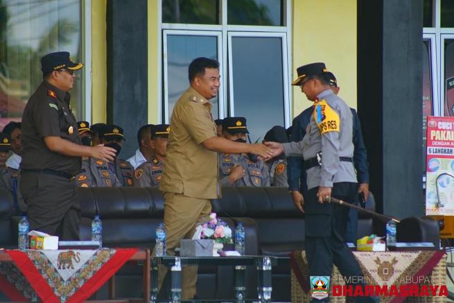 DHARMASRAYA -- Bupati Dharmasraya, Sutan Riska Tuanku Kerajaan memimpin Apel Gelar Pasukan Pengamanan Pilwana Serentak di 43 Nagari se-Kabupaten Dharmasraya. Apel tersebut dilaksanakan di halaman Kantor Bupati Dharmasraya, Selasa, (18/10/22).Dalam sambutannya Bupati mengungkapkan bahwa sebanyak 121....