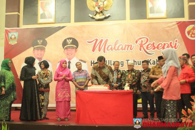 DHARMASRAYA - Rangkaian Hari Jadi Kabupaten Dharmasaya ke 15 berakhir dengan kemeriahan Malam Resepsi yang digelar pemerintah daerah di Auditorium Dharmasraya, Senin (07/01) malam. Semua elemen masyarakat mulai dari Forkopimda, DPRD, tokoh masyarakat, tungku tigo sajarangan, bundo kanduang, organisa...